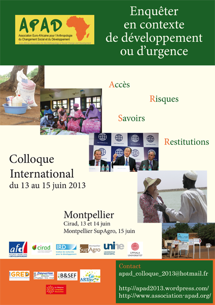 For its 2013 conference, the APAD has proposed to deepen the methodological, epistemological and ethical questions which are inherent to the relationships of research in humanitarian or development aid situations.